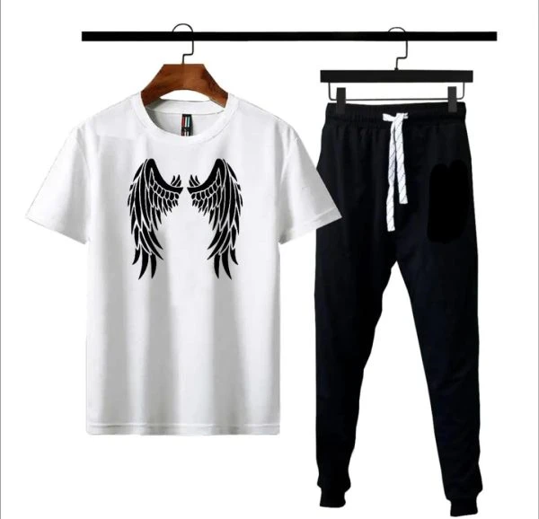 Eagle Wings Printed Gym Wear Tracksuit For Men& Boys Tshirt & Trouser- White