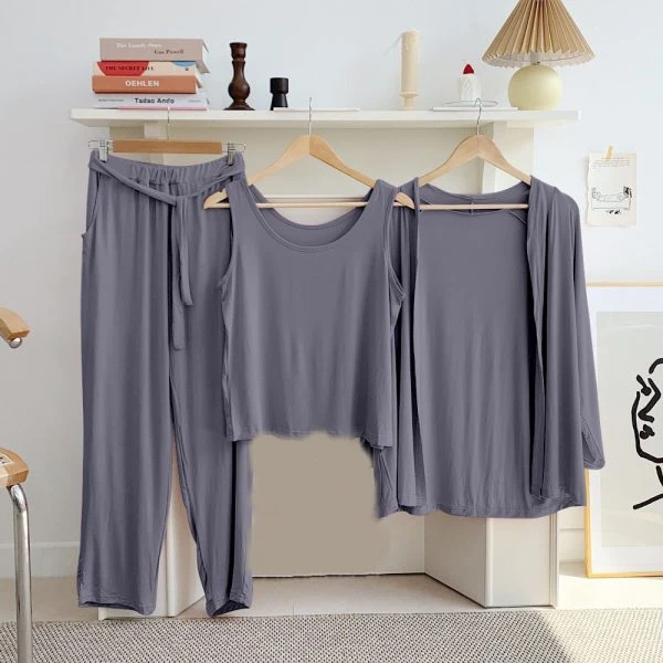 GREY WOMEN NIGHTS DRESS3 pcs for women NIGHT SUIT