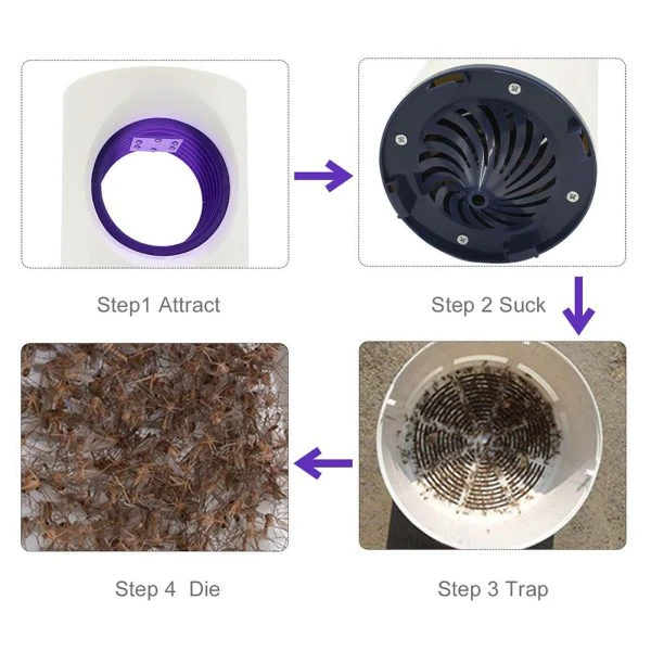 - Effective Trapping & Elimination: Flies and insects get lured by the light, then trapped in the removable mosquito tray where a strong cyclone dehydrates and eliminates them.