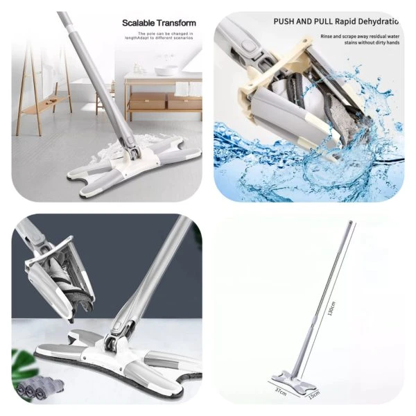 - Easy Wringing System: Simply push down to wring excess water, keeping your hands clean and dry.